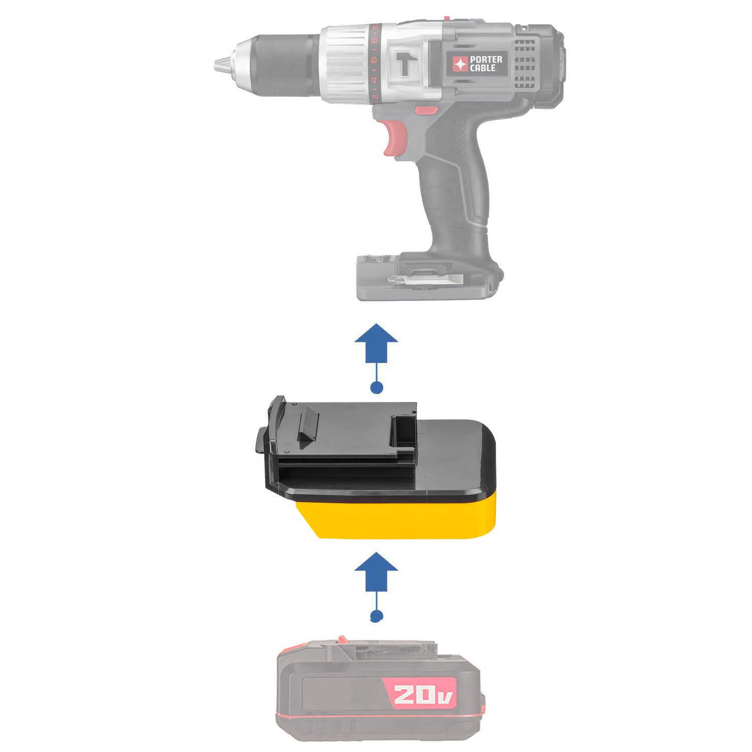 The Bauer 20V to Porter Cable 18V (Ni-Cd) Battery Adapter enables you to operate your Porter Cable 18V Ni-Cd cordless tools using Bauer 20V lithium batteries — without rewiring, permanent alterations, or complex installation. This adapter is engineered to create a secure mechanical fit and dependable electrical connection between the Bauer 20V battery platform and Porter Cable 18V Ni-Cd tools, allowing you to extend the life and usability of your existing equipment.