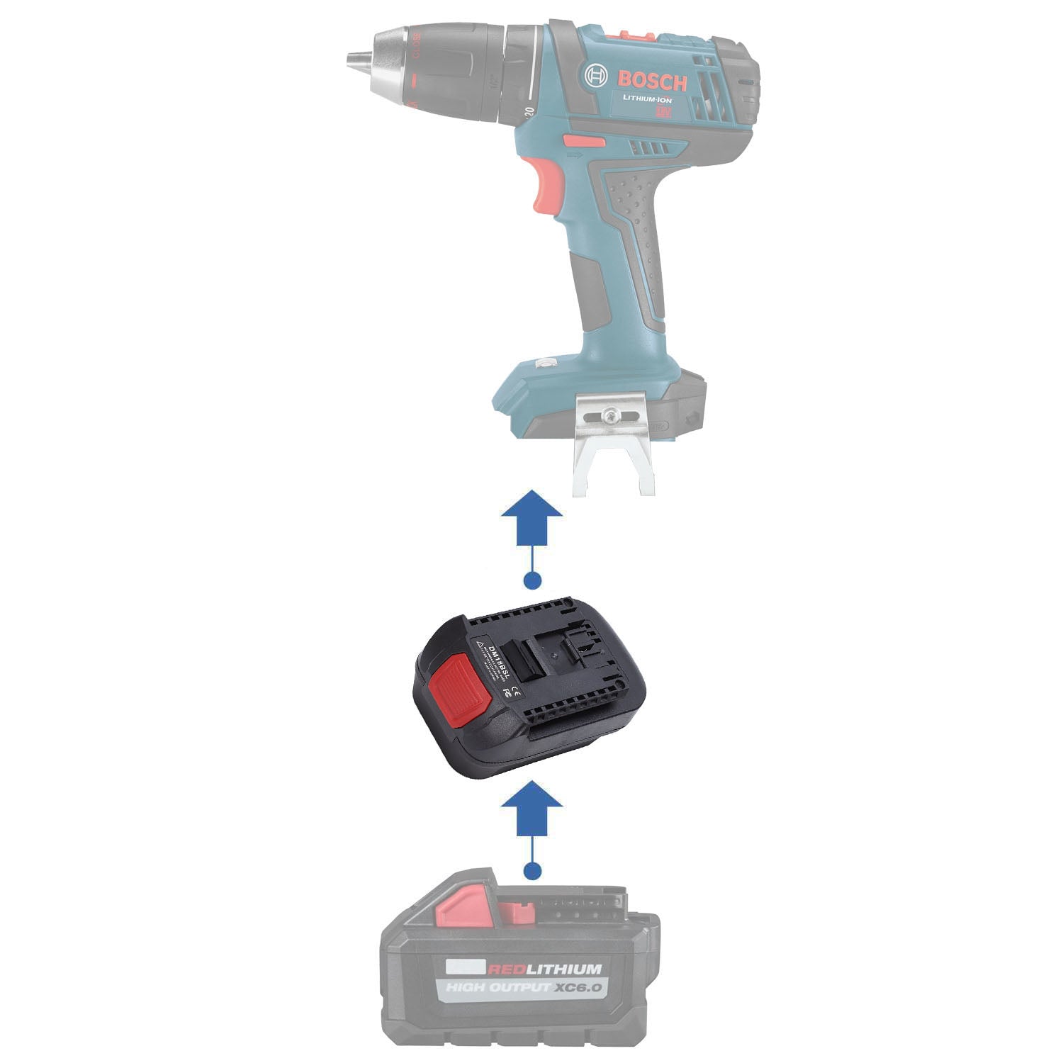- Use DeWalt 20V or Milwaukee M18 batteries with Bosch 18V tools