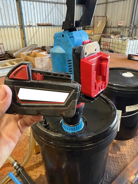 Milwaukee lithium battery converter for MacNaught grease guns and pumps